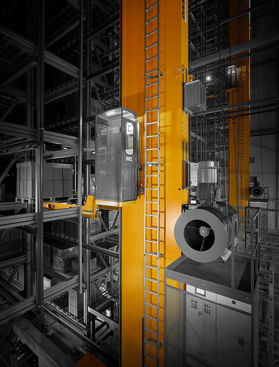 The high throughput rates of the DAMBACH storage and retrieval machines essentially contribute to the flexibility and efficiency of the 60 000 square meters of the Geberit logistics center.