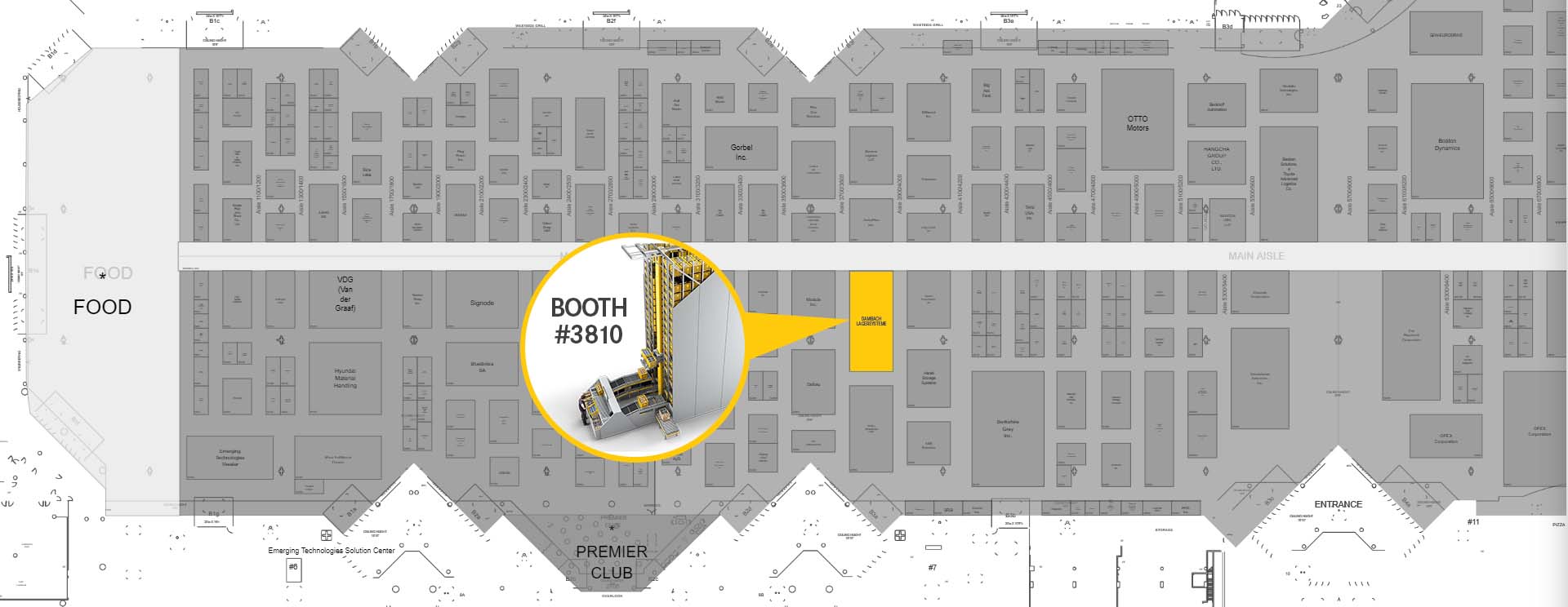 Zu den weiteren Exponaten des deutschen Intralogistikanbieters zählt die Elektrobodenbahn für einen sehr schonenden Palettentransport. Sie besteht aus Hochleistungs-Transportfahrzeugen, die für Nutzlasten von bis zu 1.500 kg (3300 lbs.) ausgelegt sind, und einem Zwei-Schienensystem. Eine Verteilweiche sorgt für eine hohe Verfügbarkeit auch bei komplexen Anlagenlayouts. Die niedrigen Umschaltzeiten der Weiche ermöglichen bei einer 1:1 Verteilung des Materialflussstromes eine Durchsatzleistung von 450 Fahrzeugen pro Stunde. Schnelle Fahrzeugwechsel und Fahrzeugeinschleusungen sind somit kein Problem – zum Beispiel für Leistungsspitzen im Materialfluss.