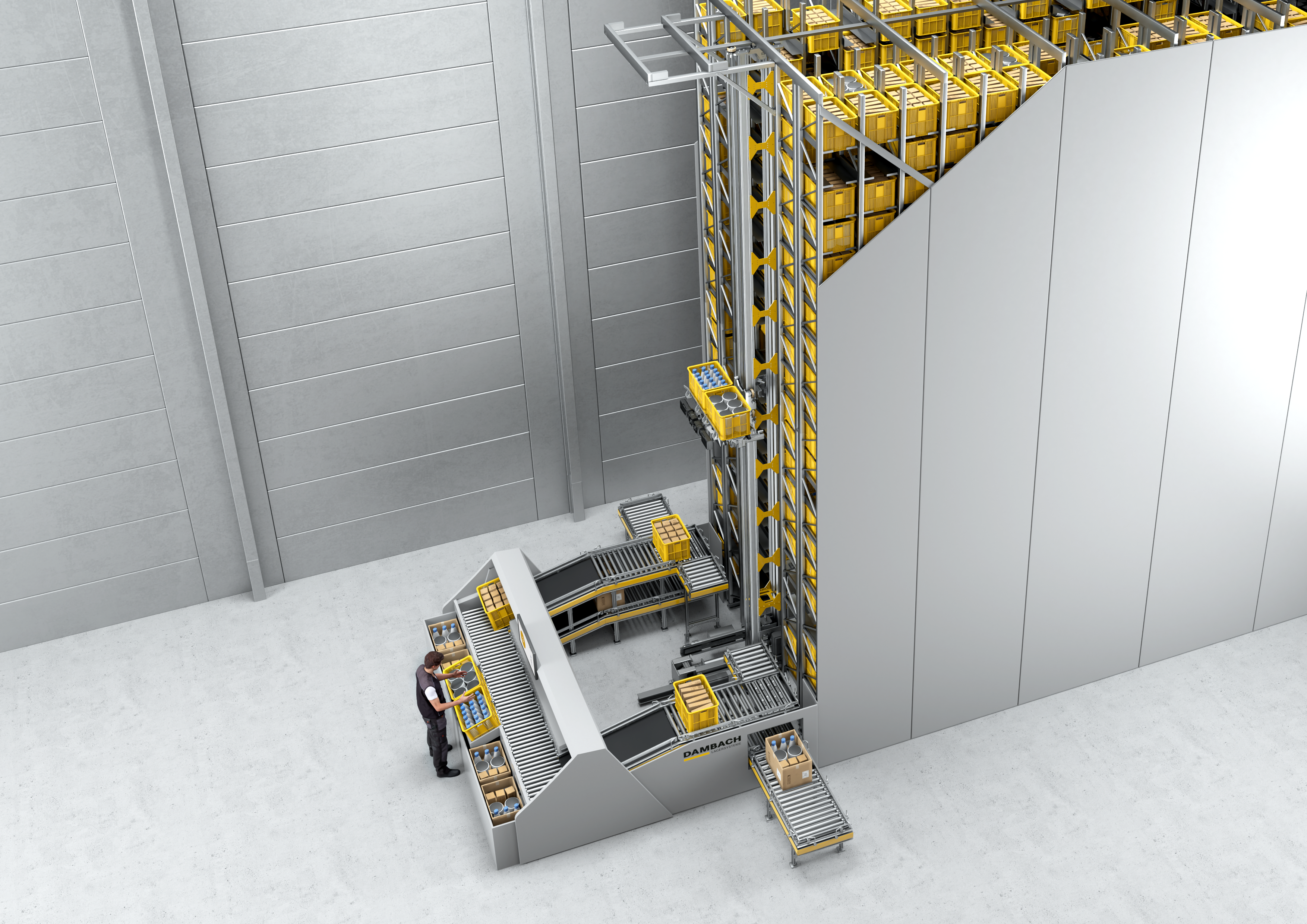 Das eingehauste und vollautomatisch arbeitende Lagersystem eignet sich für die Bevorratung und Kommissionierung von Kleinteilen und Behältern – also von Produkten, wie sie im elektronischen Warenhandel üblich sind. Das DAMBACH-Angebot beinhaltet ebenfalls eine Kleinteile-Fördertechnik für die Vorzone, eine frei wählbare Anzahl an Kommissionierplätzen und durch die Software MFS-Plus eine sehr leistungsfähige Stellplatzverwaltung. Selbstverständlich können alle im System angebotenen Komponenten auch einzeln erworben werden. Einen sehr zuverlässigen 24/7-Service in den USA garantiert die DAMBACH Automation INC..